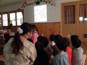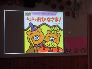 歌を歌ったり、スクリーン絵本を見ました。