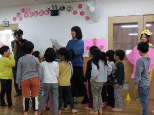 おだいりさまとおひなさまが登場して子ども達は大喜び。